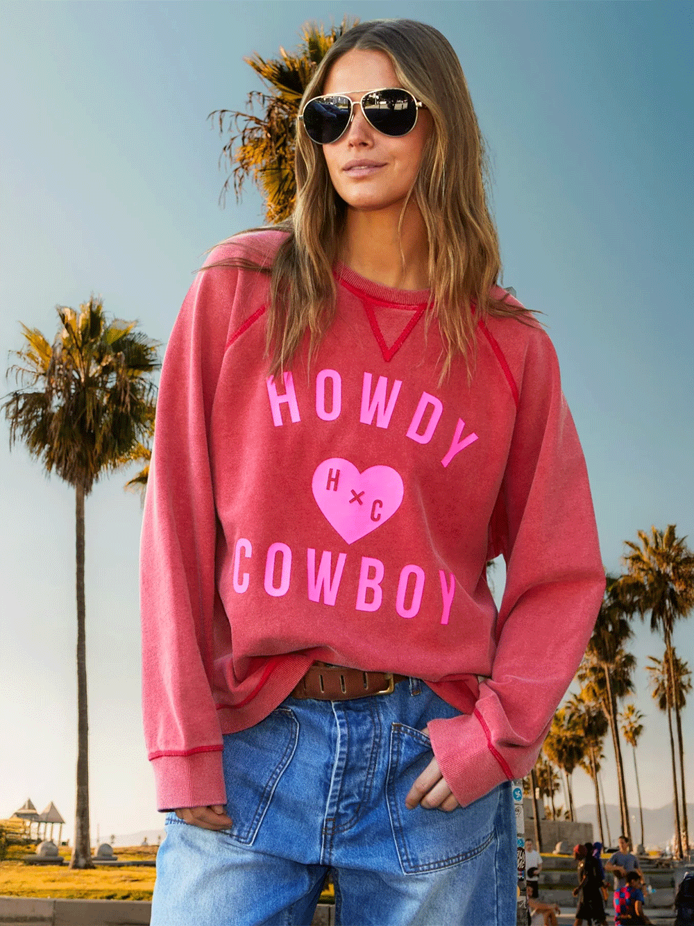 Experience the rugged vintage style with our Howdy Cowboy Vintage Sweat in WASHED BLACK. This sweatshirt features a worn-in, slightly distressed look for a touch of authenticity, and showcases a bold black Howdy Cowboy print on the front. Add a touch of western charm to your wardrobe with this unique piece.