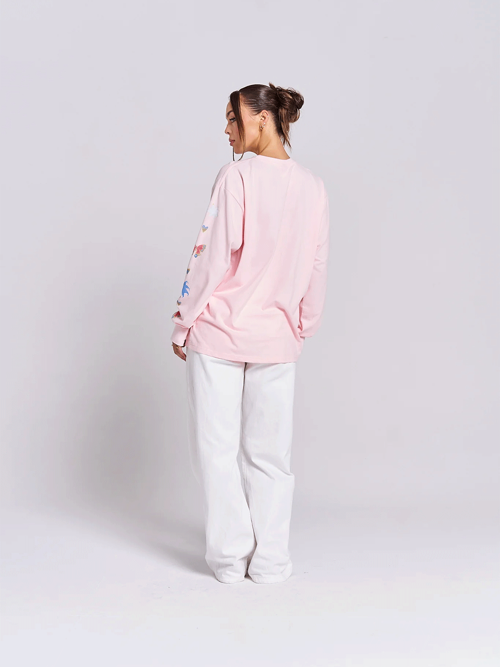 Experience ultimate comfort and style with the Love Bug Long Sleeve Top. Crafted from super soft buttery cotton, it offers a relaxed fit with drop shoulders for effortless movement. Thumb holes add a subtle touch of flair, while the printed sleeves and chest inspired by butterflies provide a distinctive look that stands out. Perfect for casual wear with a refined edge.