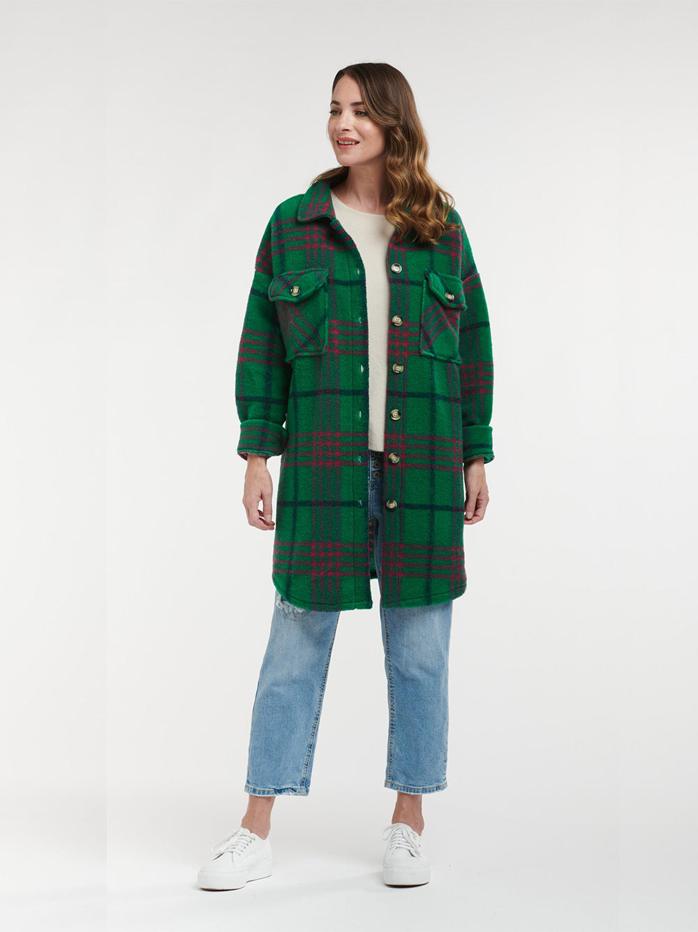 Plaid Long Jacket - EMERALD/BLUE/PINK