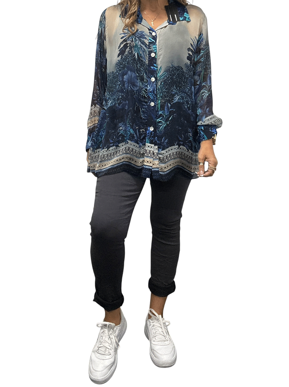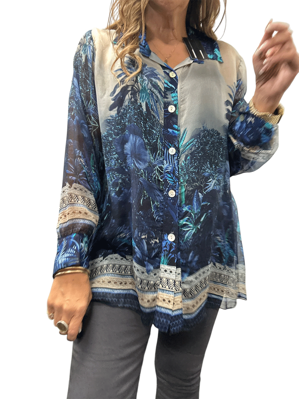 Vacanza Jungle Silk Shirt - BLU SCURRO